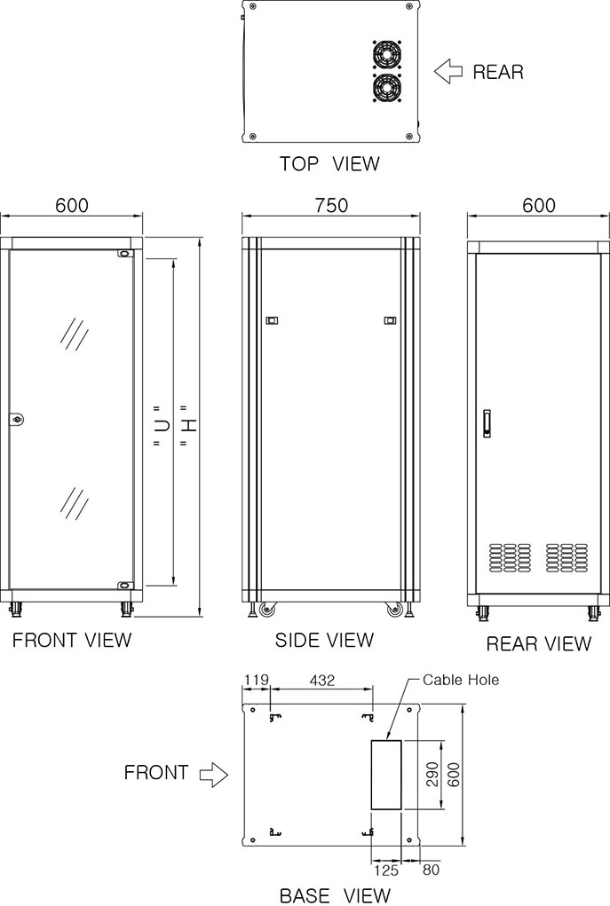 H = ¹Ù´ÚºÎÅÍÀÇ ³ôÀÌ, U=Unit=44.45mm ÀÔ´Ï´Ù.